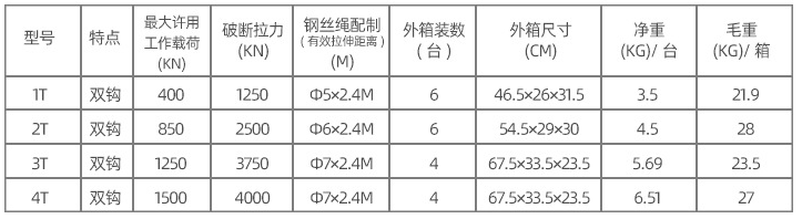 采用高強度鋼板,優質碳鋼的一體結構,搭配高密度齒輪,防逆轉設計理念碳鋼套壓制鋼絲繩安全系數大大提升。