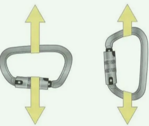當安全鉤是懸空狀態時,調整開口向下。在安全鉤自身重力的作用下,會使荷載跟安全鉤彈力軸保持在一條線上。懸掛完安全鉤后,還要檢查鉤子是否已經鎖緊。
